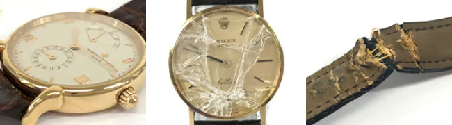 貴金属の場合、歪んでしまったり切れてしまった指輪やネックレスでも金やプラチナ素材のものであれば壊れていないものと同じお値段でお買い取りできます!ブランド品や時計であれば壊れていてもお値段をお付けできることは多々あります!あきらめて捨ててしまう前に是非一度お見せください!